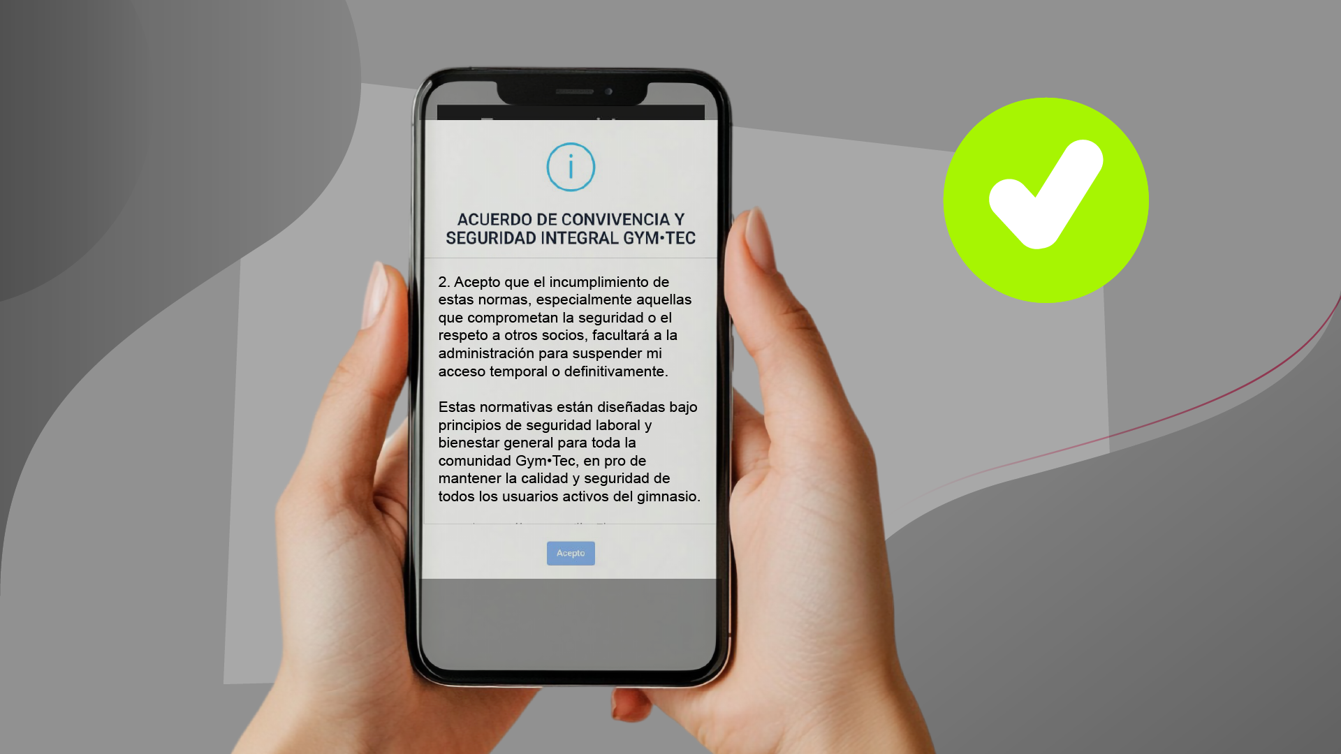 Muy claro: Tu permanencia en Gym•Tec ahora está ligada a la aceptación del consentimiento informado en la app.